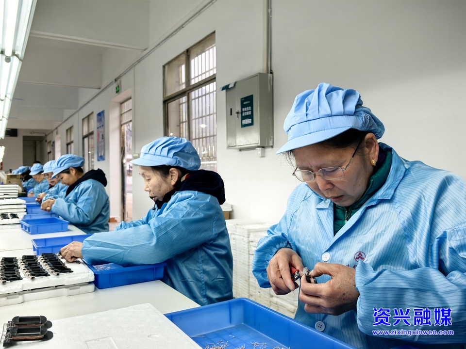 2025年2月6日,在资兴市八面山瑶族乡瑶乡家园慧华电子厂,安置群众在家门口就业。