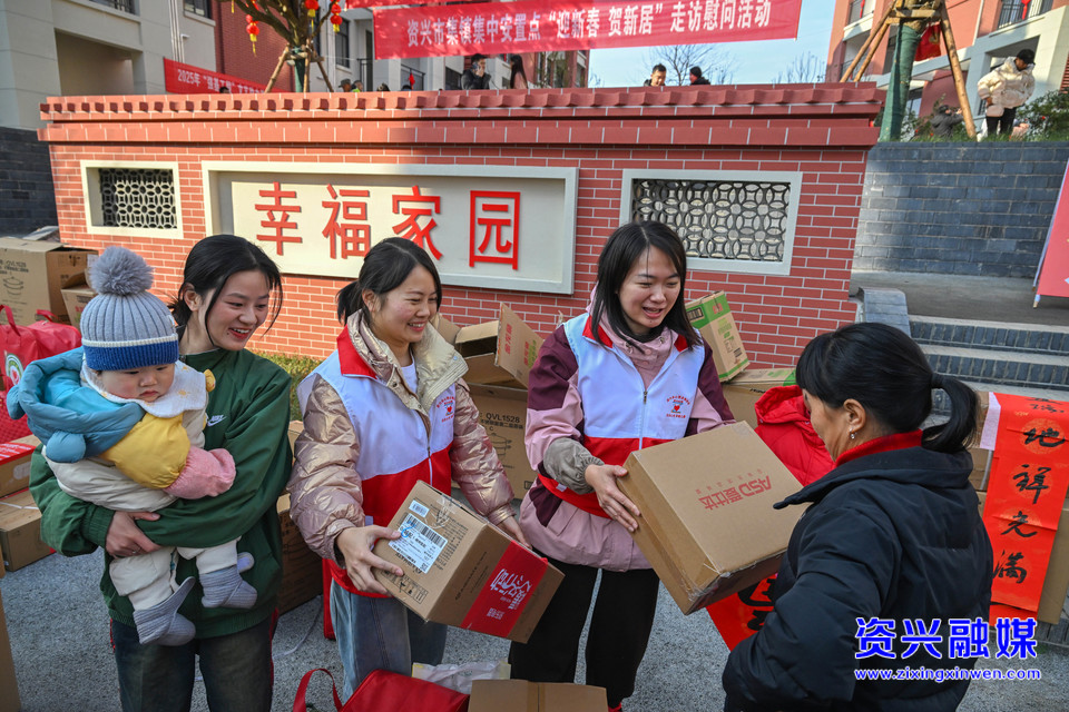 2025年1月18日,资兴市开展“迎新春 贺新居”走访慰问活动,志愿者为刚搬入新家的安置户发放爱心物资。