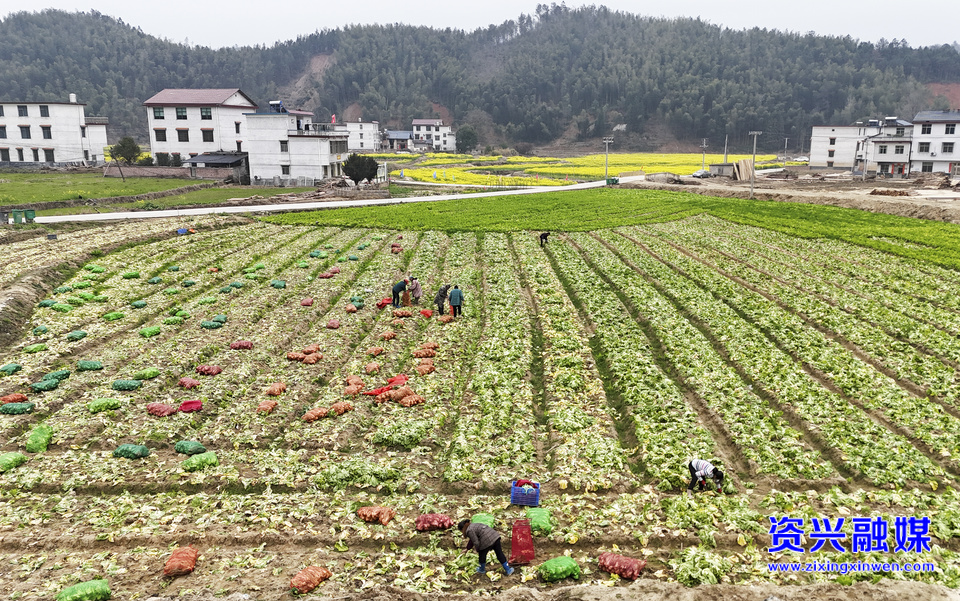 2025年2月26日,在资兴市兴宁镇百嘉洞村蔬菜种植基地,农户正在采收芥菜抢“鲜”上市。之前,这里曾是灾损农田,当地加速农田复垦复耕工作,快速恢复农业产业正常秩序。