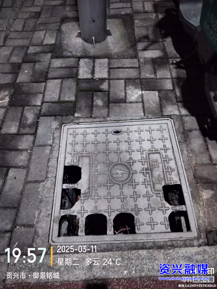 隐患问题:资兴大道人行道一路灯井盖破损。