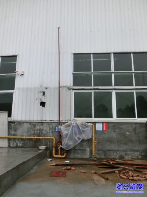 隐患问题:微负压热处理装置区的天然气放散管设置不符合相关技术标准要求(易燃气体放空管管口应高于10m范围内平台或建筑物屋顶3.5m以上)。