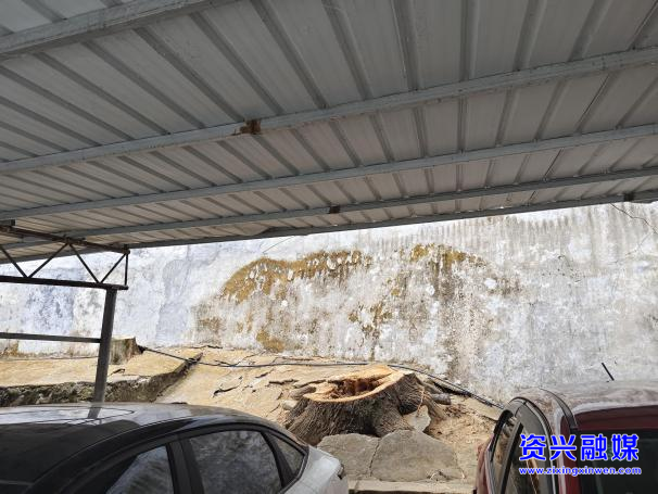 隐患问题:停车场的两棵大树有倒塌的风险