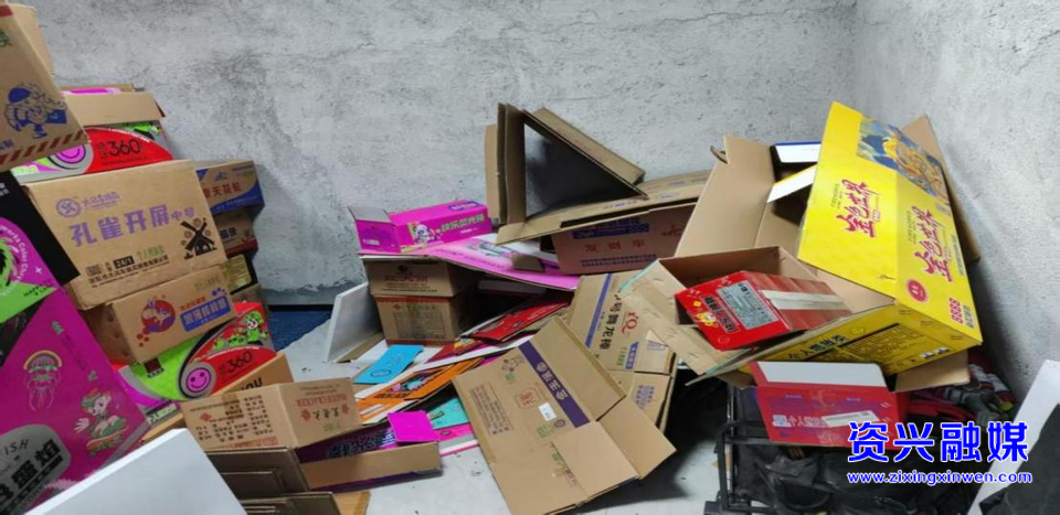 隐患问题:烟花爆竹产品与易燃物品与易燃杂物堆放一起