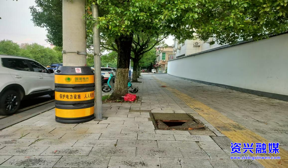 隐患问题:晋宁路江山府江路段电力检查井盖破损