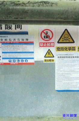 隐患问题:盐酸罐未设置必要的化学品作业场所警示性标志