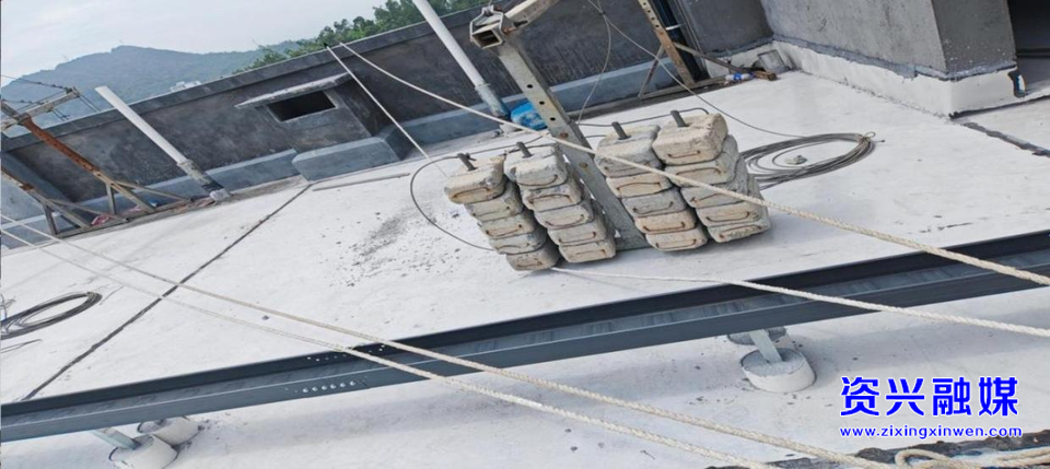 隐患问题:屋顶使用吊篮安全绳与配重块缠绕。