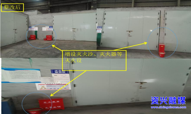 隐患问题:危化品仓库门口未设置灭火沙、灭火器