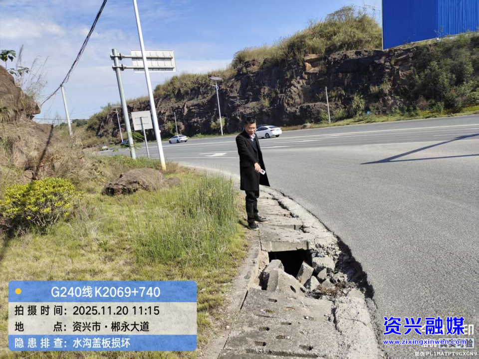 隐患问题:国道G240线K2069+740处水沟盖板损坏,存在安全隐患。