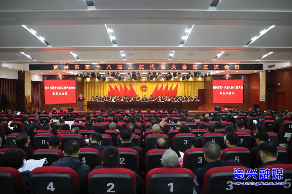 12月23日上午,资兴市第十八届人民代表大会第五次会议在市政务服务中心开幕。市委书记杨理诚,市委副书记、市长陈占华出席会议,市人大常委会党组书记、主任王仁庆主持大会。