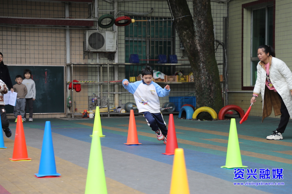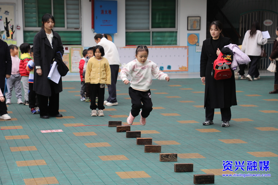 运动会现场,15米绕障碍跑展示孩子们的灵敏与速度,双脚连续跳跃传递出欢快的节奏,走平衡木则展现出孩子们的胆量与专注力。