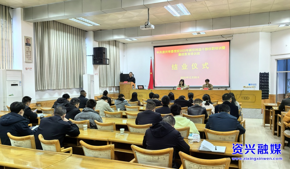 12月5日,中共资兴市委党校新任科级干部任职培训暨廉政教育培训班结业仪式在一楼报告厅举行,为期半个月的集中培训圆满落幕,全体学员顺利完成学业,即将带着新的理论武装、廉政意识和使命担当回到各自工作岗位。